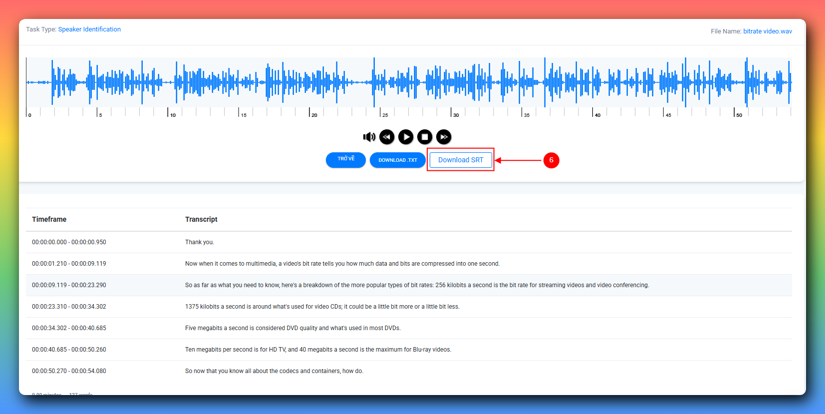 6️⃣ Bước 6: Khi chuyển đổi thành công tải bấm Download SRT để tải về tệp phụ đề chuẩn SRT